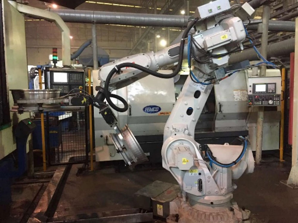 主要針對輪轂行業(yè)的機(jī)器人系統(tǒng)化集成,代替人工進(jìn)行搬運(yùn),減輕員工勞動強(qiáng)度,提高生產(chǎn)效率。如鍛造輪轂生產(chǎn)線、自動化加工單元、機(jī)器人搬運(yùn)等,主要根據(jù)客戶要求進(jìn)行定制設(shè)計,滿足客戶需求。