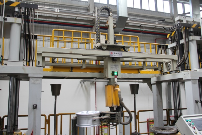 用于低壓鑄造機生產的熱毛坯輪轂的全自動取料、淬水冷卻、翻轉控水、升降轉運等自動化過程。壓鑄機配備機械手后可實現一人操作四臺壓鑄機,大幅降低員工勞動強度及人力成本。該設備采用伺服電機驅動,配精密行星減速機,運行平穩,反向間隙小,定位準確,壽命長。